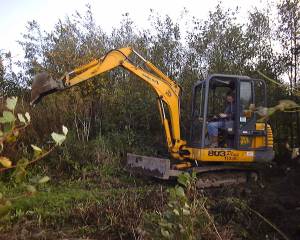 [Oh Nooooooo.... Roger has been let loose on a mini-digger. While Roger is