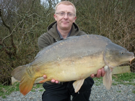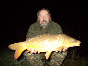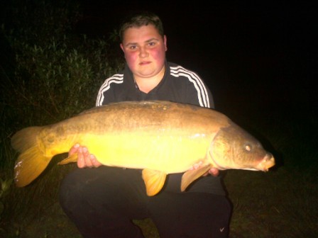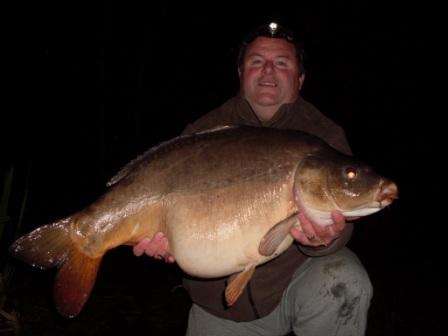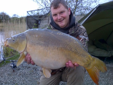 This stunning mirror fell to Carl Loftus on the Double Bay left at 8am. A bottom hookbait of Cell Dumbell Boilie did the trick. |