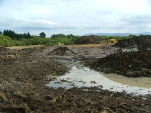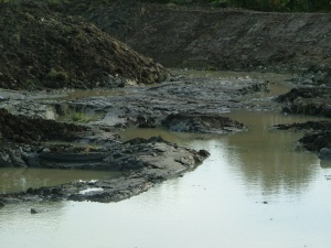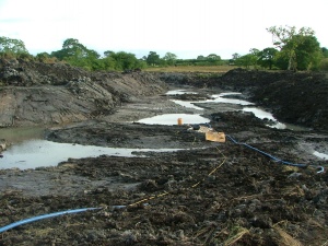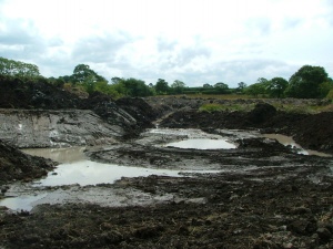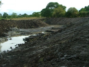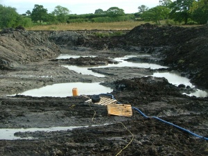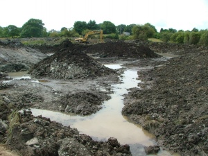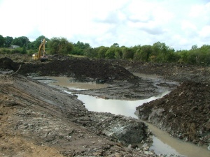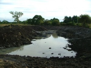 | The right had side of the lake is now complete and feature rich. Water is flowing in well from the natural springs - so much so some features have already disappeared..such as the initials K C that Ned our operator decided to dig in the bottom end... | |