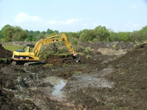 Ned (who also dug Thompson's) is well underway now on the creation of our third specimen lake.The banks are taking shape nicely and water will not be a problem in the future as we have hit 6 natural springs so far.Bottom features are being created as he goes along.The average depth looks to be around 7' with some deeper channels and holes to 10' where sumps have been.The smaller of the two fields being used for the new lake is now about third dug-out but the difficult bit is still to come with the creation of a central triple S island and a small round island.