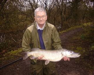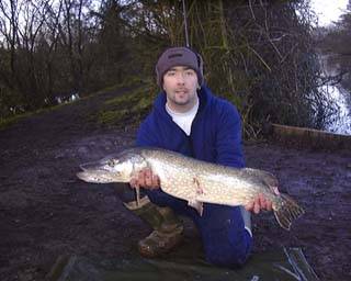 Pike were first introduced into the Carp Lake in November 1999, the twenty fish of around 7 lb were the solution to the problem of overpopulation of roach in the lake. The following winter a further ten pike to 14 lb were introduced. When anglers asked to target these fish during the colder months, we were surprised to see some fish during 2001 had reached 18 lb. Subsequently, the high numbers of prey fish have also allowed the pike to breed successfully and the lake now supports a healthy stock of small pike which will grow on and produce quality pike fishing on the venue. The biggest known to date is 21 lb. Pictured below is Eifion Parry with his stunning personal best.